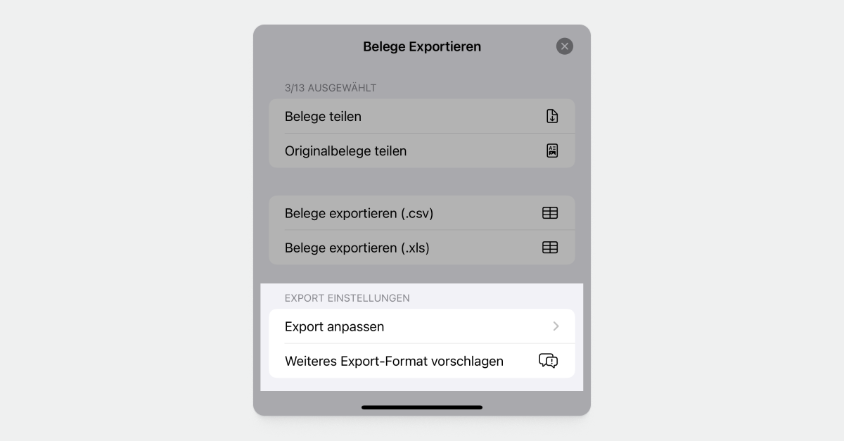 Tippe auf Export anpassen